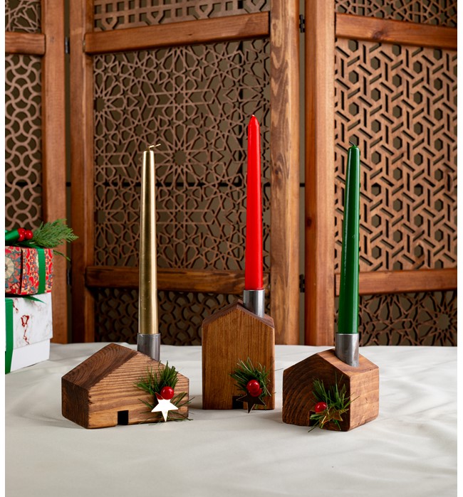 - Ahşap malzeme kullanımı, ürünün dayanıklılığını ve uzun ömürlü kullanımını garanti eder. - Modern tasarımıyla evinizin dekorasyonuna şık bir dokunuş katar. - 3'lü set halinde sunulan şamdanlar, farklı boyut ve renklerdeki figürlerle evinizde çeşitlilik yaratmanızı sağlar. Ürün Ölçüleri ; 12 x 12 cm, 10 x 10 cm ve 9 x 9 cm