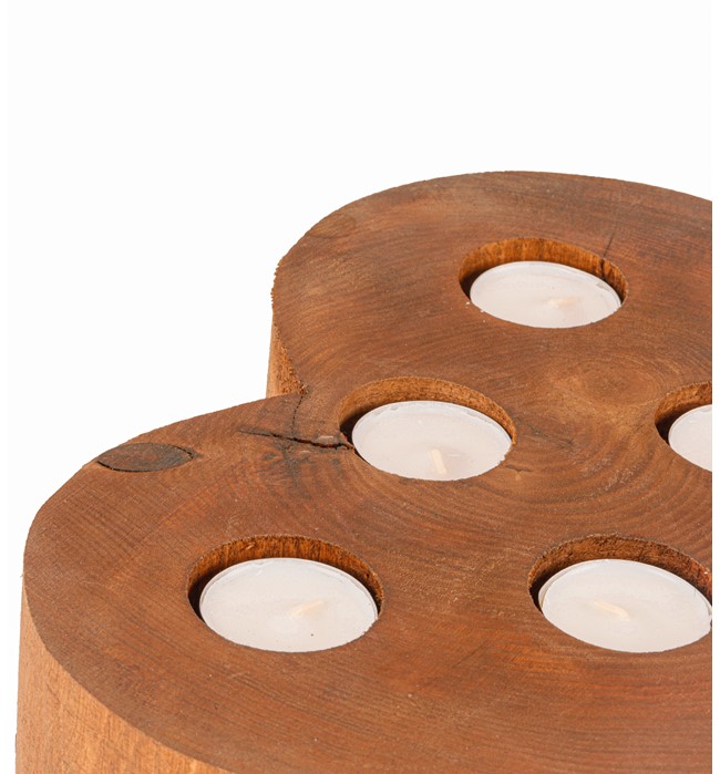 - Her bir tealight mum, ahşabın doğal dokusuyla evinizin atmosferine sıcaklık katar ve mekanınıza samimi bir hava kazandırır.