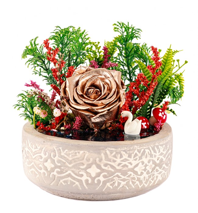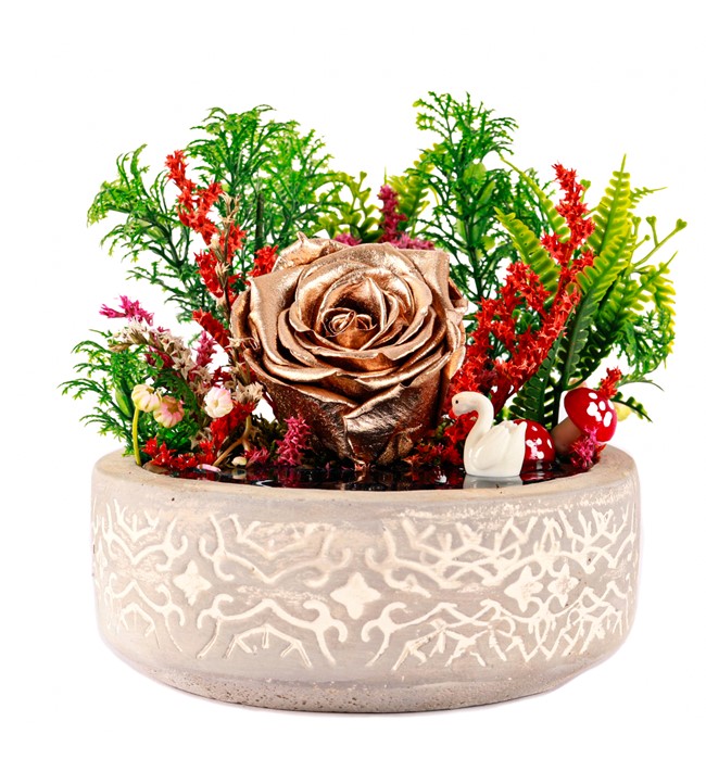Beton Saksıda Gold Solmayan Gül Teraryum