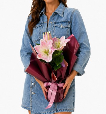 Bordo Buketli Pembe Lilyum
