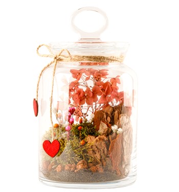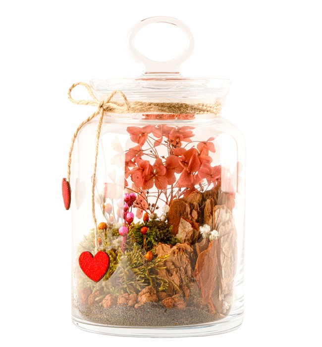 Cam Kapaklı Vazoda Yapay Bitki Tasarım
