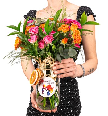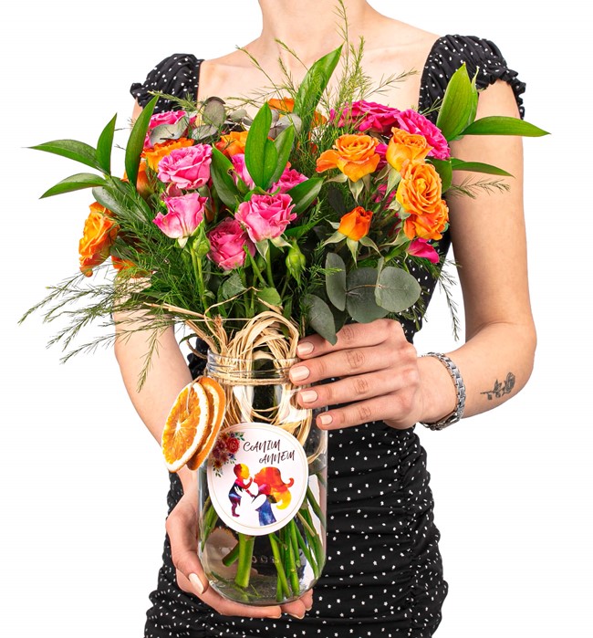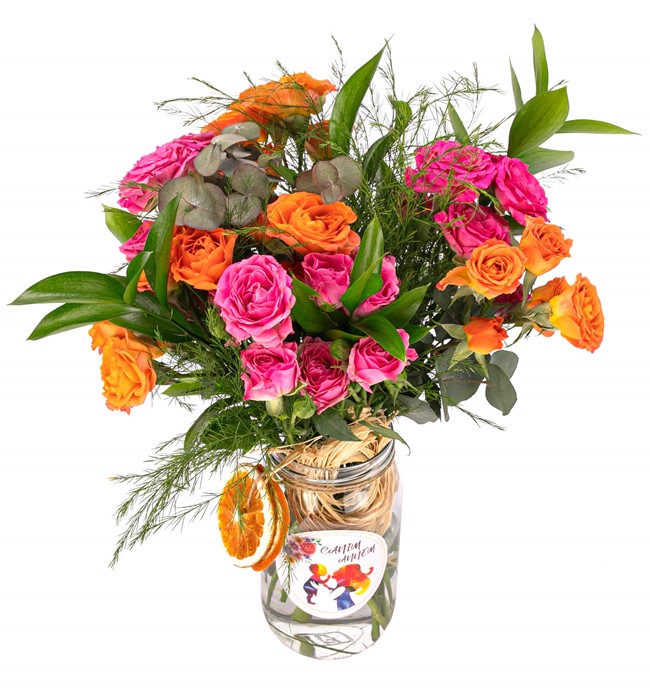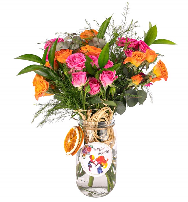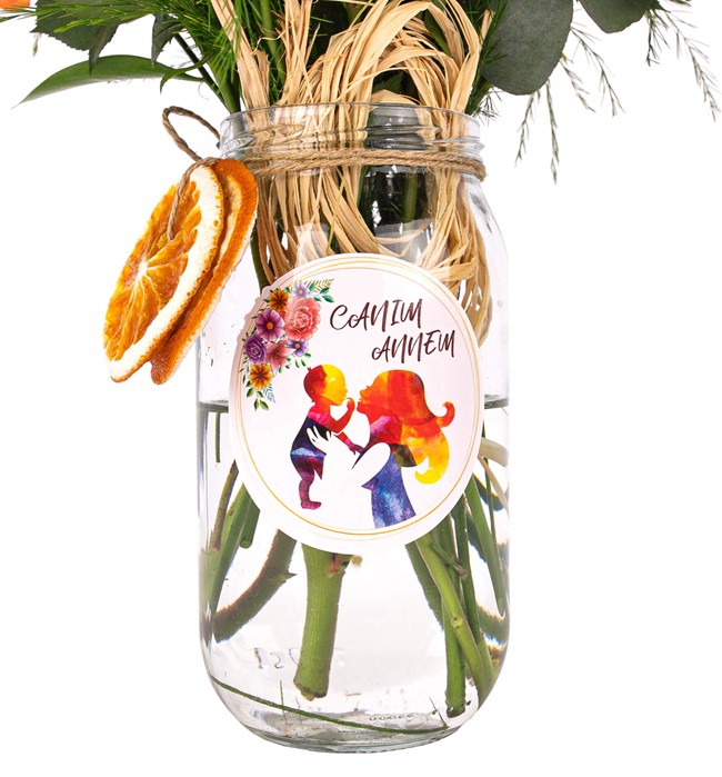 Canım Annem - Turuncu Pembe Mini Gül Tasarım