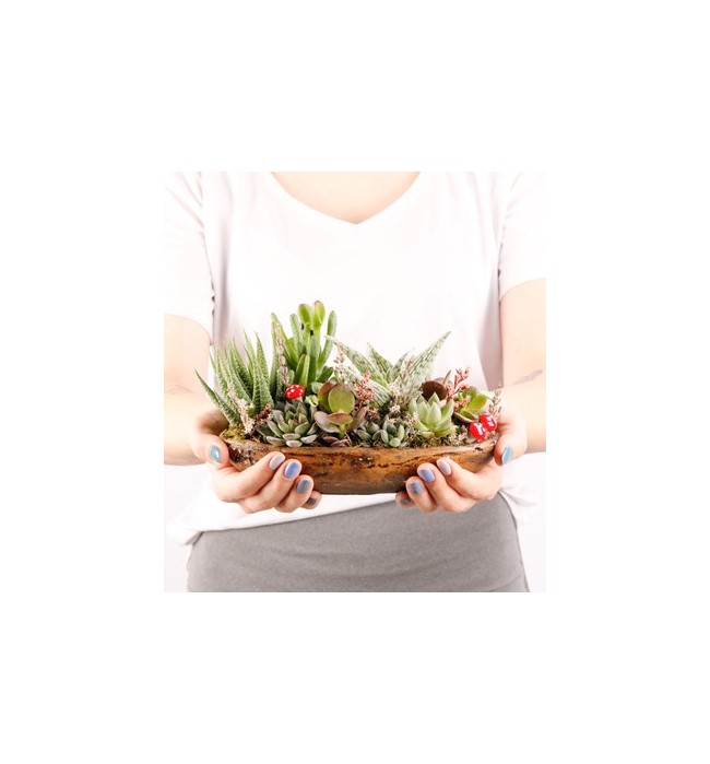 El yapımı bu çok özel saksı içerisindeki sukulent tasarım ile O'na çok özel bir hediye sunabilirsin.. Dekor Saksıda Mix Sukulent Tasarım; Ofis ve iç mekan ortamlarınız için tasarlanan ''Dekor Saksıda sukulent Tasarım'in saksısı tamamen el yapımıdır. Sevdiklerinize farklı bir hediye sunmanız için özenle tasarlandı. Bakımı Hakkında: 10-15 günde bir az miktarda sulanması kafidir. Not: Stok durumuna göre aynı sukulent familyasından farklı bitkiler gönderilebilir.