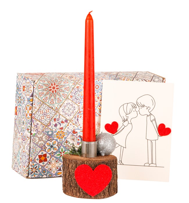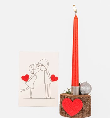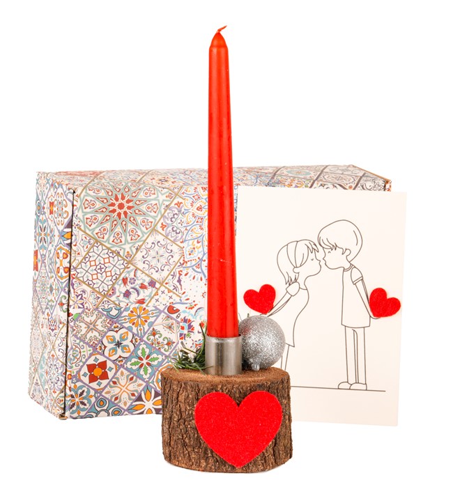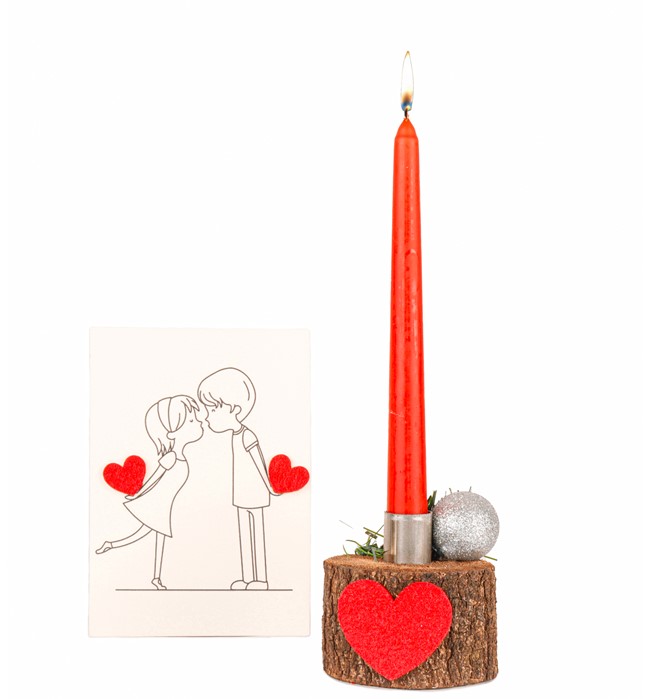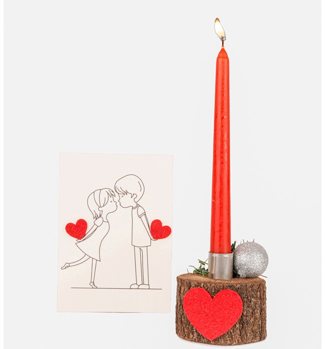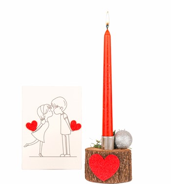 Keçe Kalpli Şamdan Mum ve Sevgililer Günü Kartı Hediye Seti