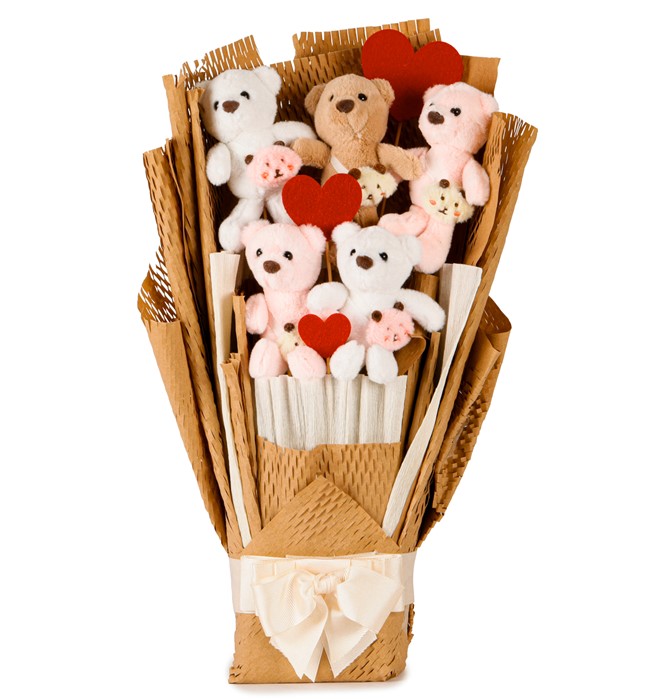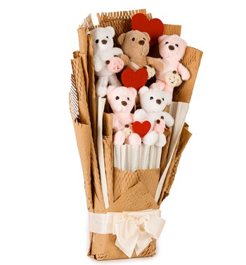 - Hediye olarak tercih edilebilecek peluş ayıcık buketi, hem görsel hem de dokunsal bir deneyim sağlayarak sevgiyi ifade etmenin zarif bir yolunu sunuyor.
