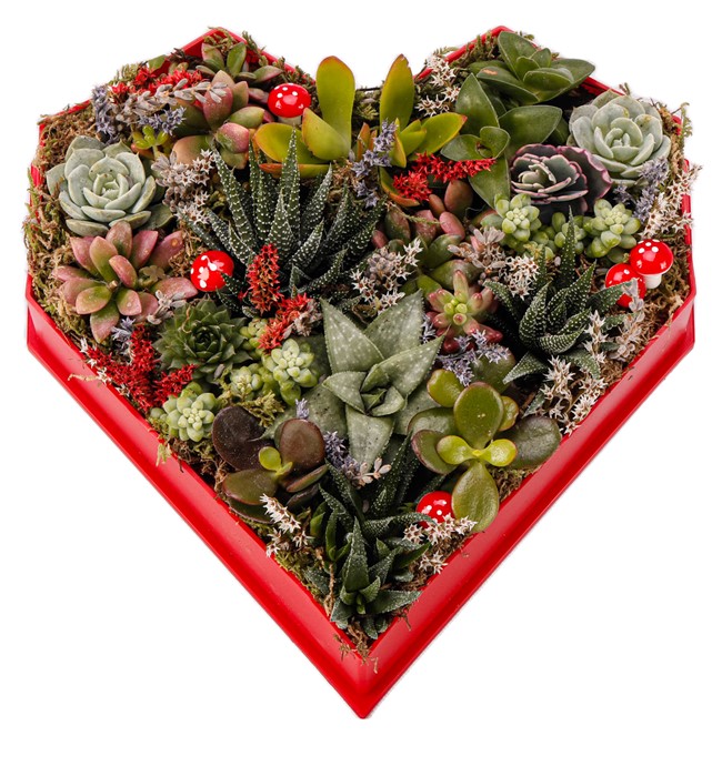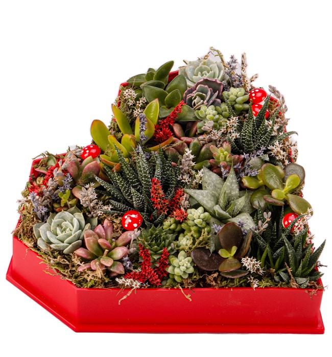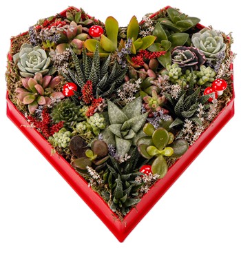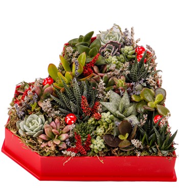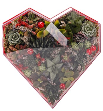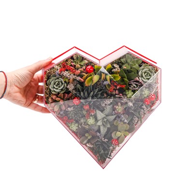 Love Box - Kalp Kutuda Mix Sukulent Tasarım