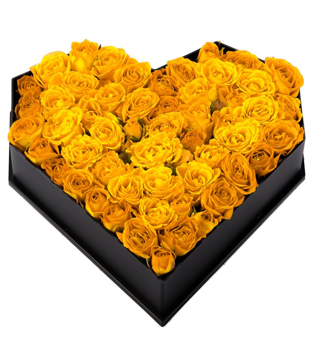 Love Box - Kalp Kutuda Sarı Mini Gül Tasarım