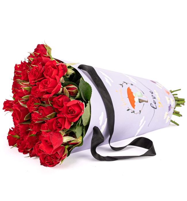 Özel taşıma çantasında mini kırmızı güller ile hazırlanmıştır.