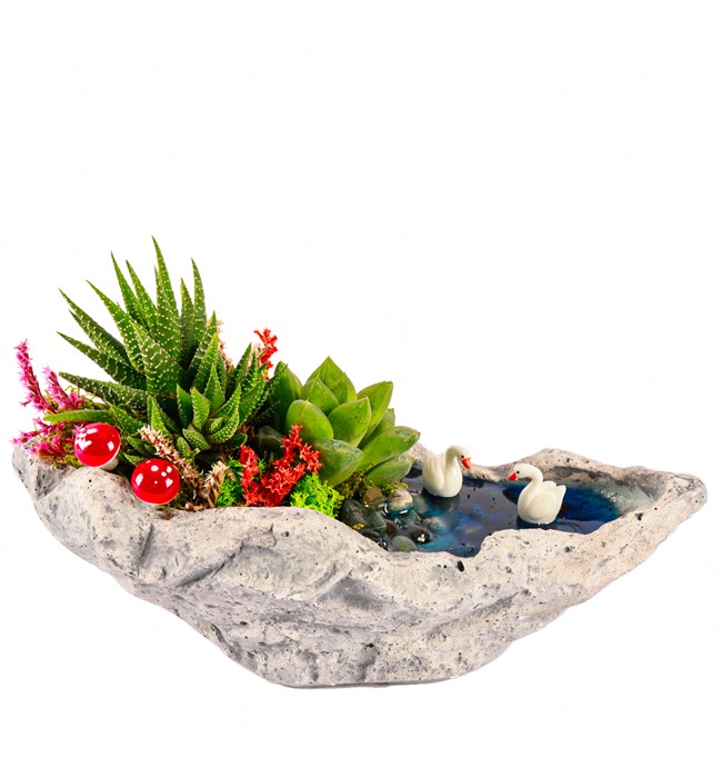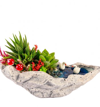 - İçerisindeki Haworthia ve sukulentler, sağlıklı ve canlı görünümüyle yaşam alanlarınıza estetik bir dokunuş ekler.