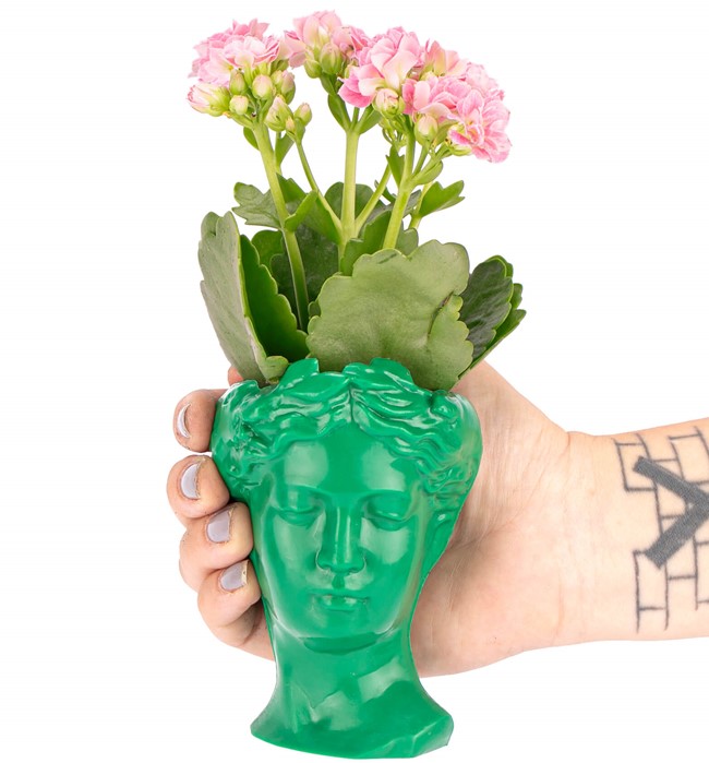 El yapımı bu çok özel mini kadın büstü saksı içerisindeki kalanchoe tasarım ile sevdiklerinize çok farklı bir hediye sunabilirsiniz.
