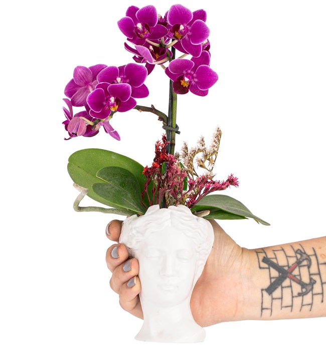 %100 geri dönüşüm metaryeller kullanılarak üretilen helen saksı içerisinde tasarlanmıştır.
