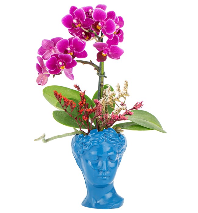 Mini Helen Serisi Tek Dal Orkide Tasarım - Kobalt Mavi