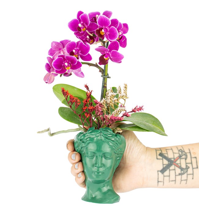 %100 geri dönüşüm metaryeller kullanılarak üretilen helen saksı içerisinde tasarlanmıştır.