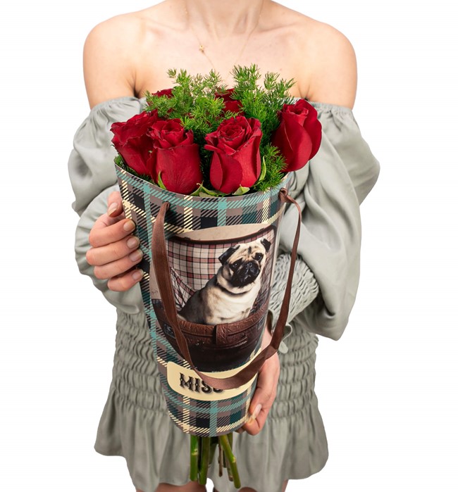 Özel taşıma çantasında 7 adet kırmızı gül ile hazırlanmıştır.