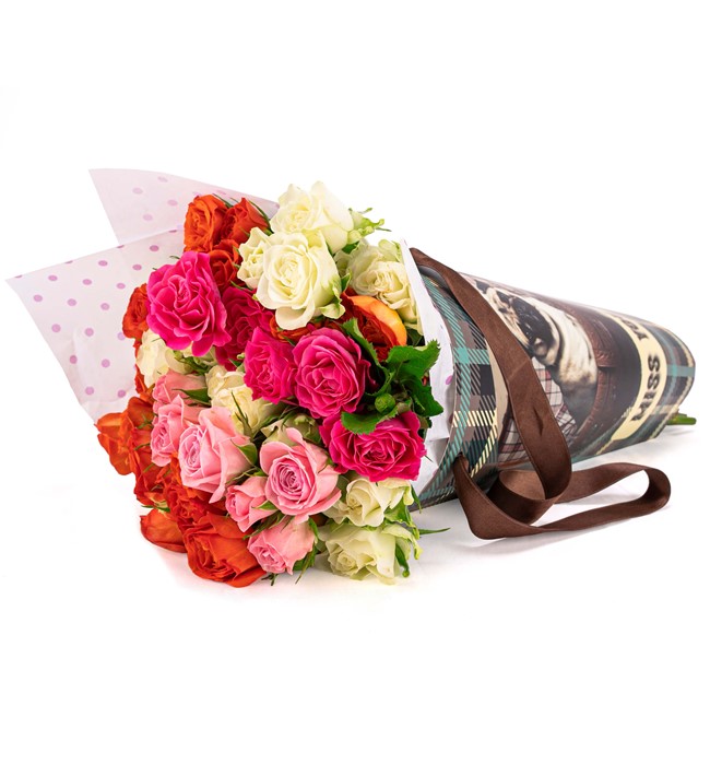 Özel taşıma çantasında mini mix güller ile hazırlanmıştır.