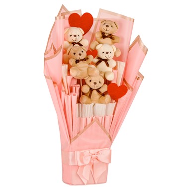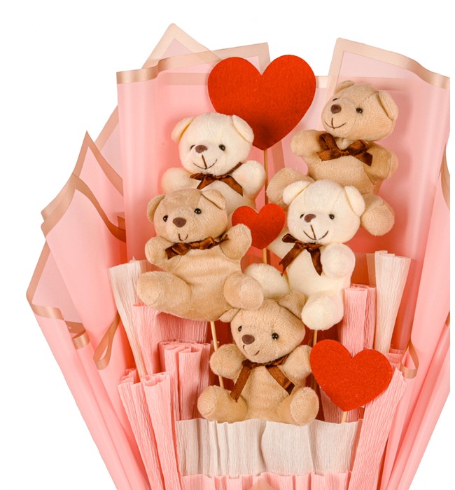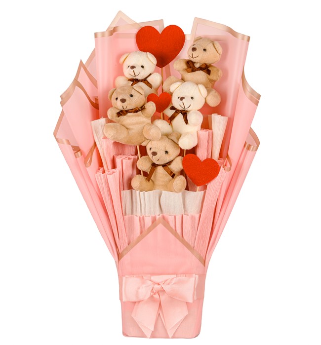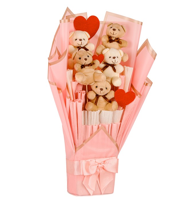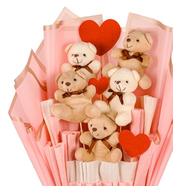 Pink Serisi - Beyaz ve Kahverengi Peluş Ayıcık Buketi