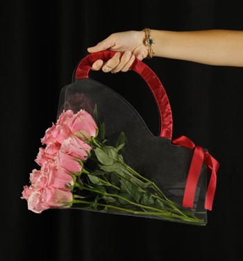 Şeffaf Taşıma Çantasında Pembe Gül Buketi
