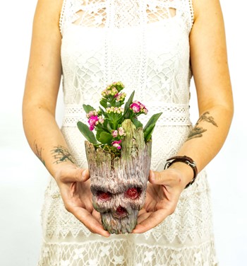 ''Guardians of the galaxy'' 'nin yetişkin Groot'u... 1960 sonbaharında aramıza katılan bu minik devi mini kalanchoe ile buluşturduk. Ölçüleri: Saksı: 15x10 cm Yaklaşık Toplam Yükseklik: 30 cm Haftada bir az miktarda sulanması kafidir. İçerisindeki kalanchoe bitkisinin rengi stok ve mevsim durumuna göre değişiklik gösterebilir.