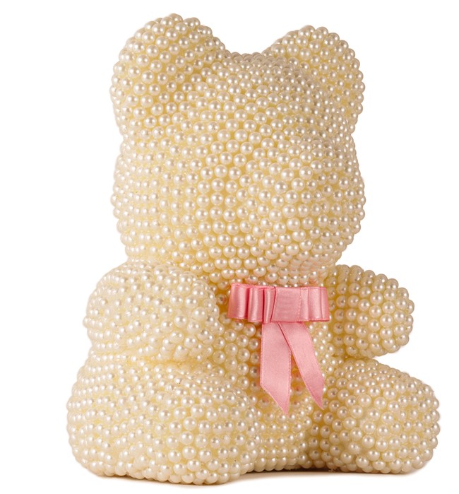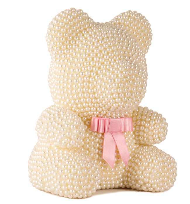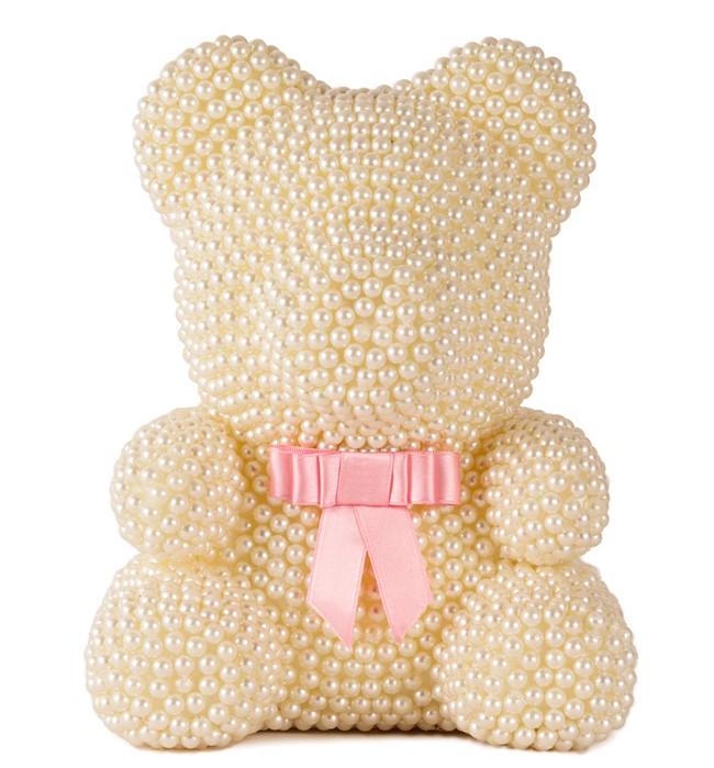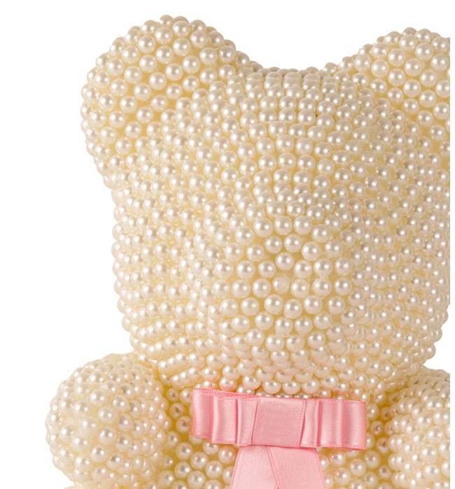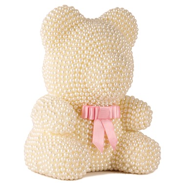 - İnci detaylarıyla süslenmiş beyaz renkteki bu ayıcık, zarifliğiyle göz kamaştırırken aynı zamanda sıcaklık hissi verir.