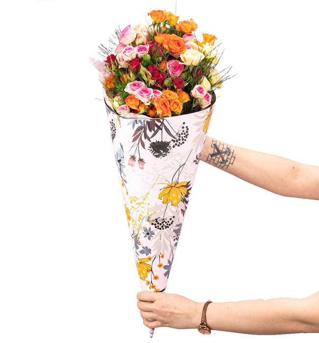 Venti Kornet Serisi - İthal Mix Mini Gül Buketi büyük aşkınızı O'na hiç bir şey söylemeden de anlatabilmeniz için özel olarak tasarlandı. Tasarım 48 x 48 cm ölçülerinde kornet içerisinde mix mini gül ile hazırlandı.