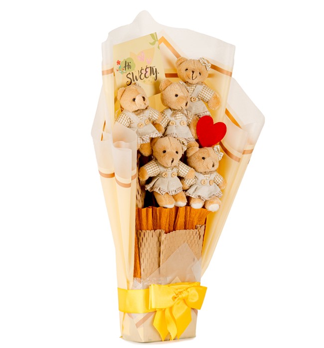 - Sevdiklerinize özel günlerde şıklığı ve sevgiyi bir arada sunan Yellow Serisi elbiseli peluş ayıcık buketi, her anınıza renk katıyor.