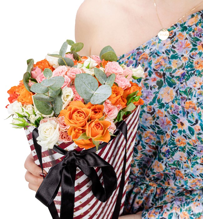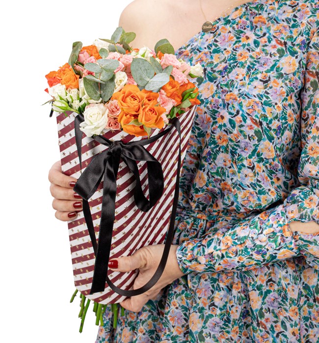 Özel taşıma çantasında 3 renk çardak gül kullanılarak tasarlanmıştır.